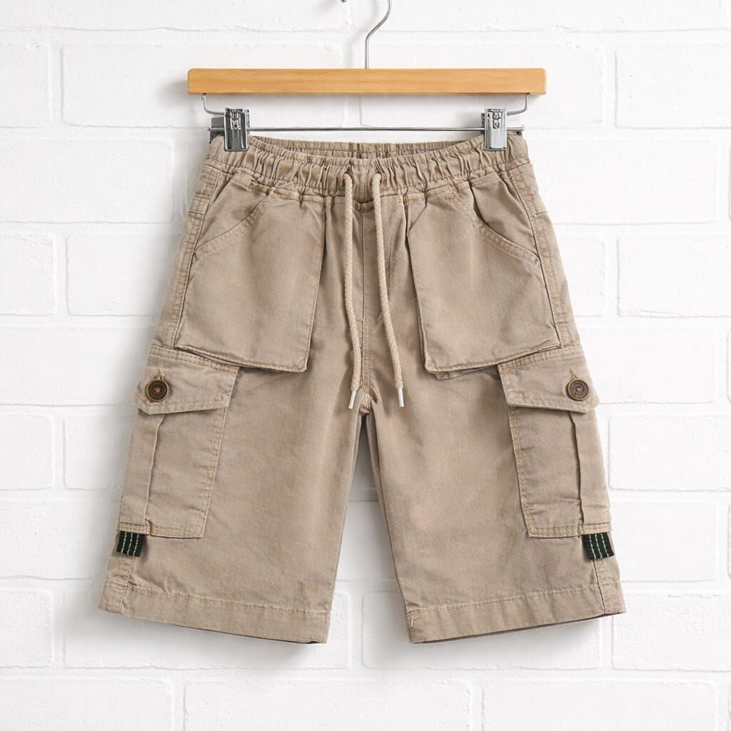 Bej Kahve Tonlu Erkek Çocuk Kargo Şort – Cepli Model