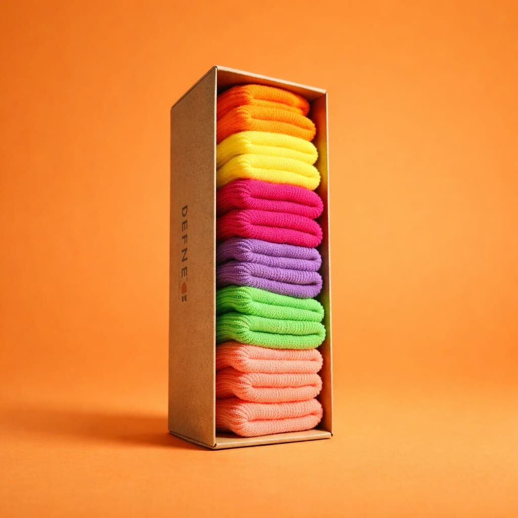 Set içerisinde 6 farklı renk bulunmaktadır. Canlı turuncu, sarı, fuşya, lila, yeşil ve şeftali tonlarından oluşan bu özel renk skalası, hem günlük kullanım hem de kombin tamamlayıcı olarak idealdir.