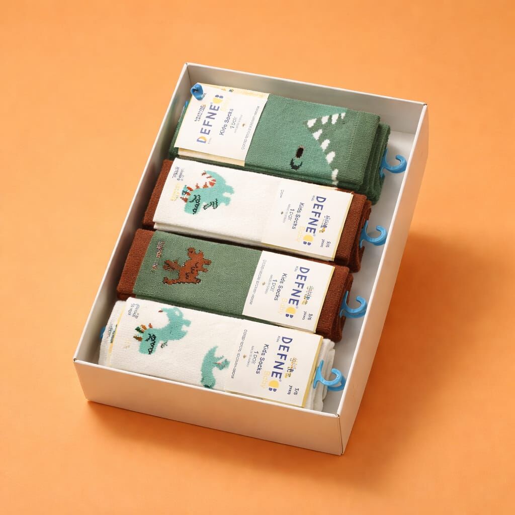 DEFNE Kids erkek çocuklara özel tasarlanan bu motifli çorap 4’lü set, eğlenceli dinozor figürleriyle dikkat çeker. Günlük kullanım için uygun olan yumuşak ve esnek yapısı sayesinde ayağı rahatça sarar, konforlu ve rahat bir kullanım sunar.