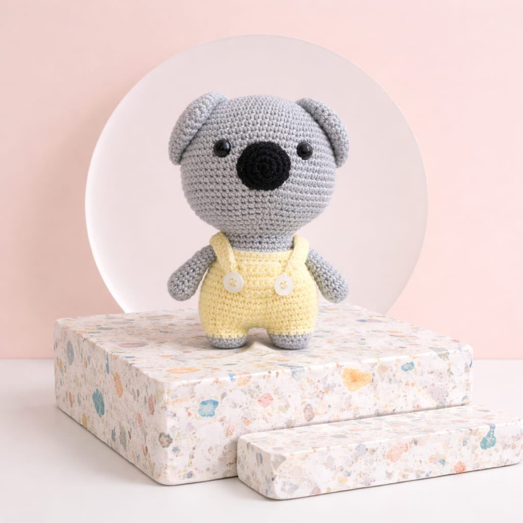 Minimal ve şık tasarımıyla dikkat çeken bu amigurumi koala tamamen el yapımıdır. Sevimli yüz ifadesi ve özenle hazırlanmış detayları sayesinde hem çocuklar hem de dekoratif amaçlı kullanım için uygundur.