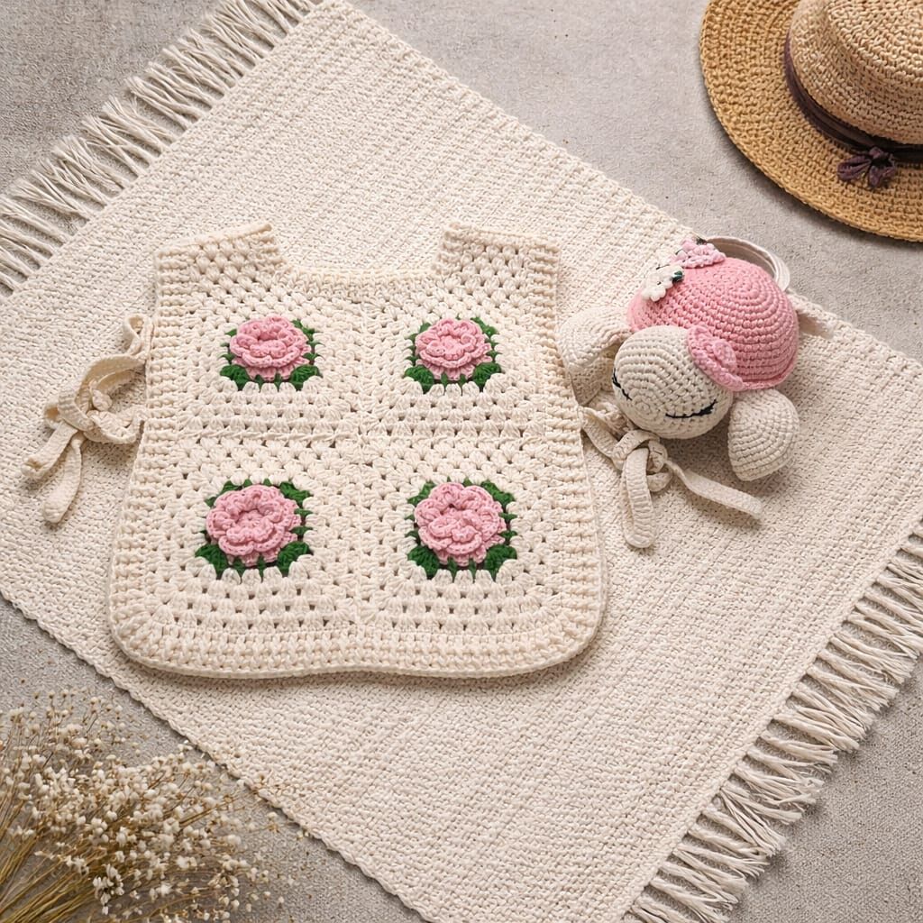 El Yapımı Özel Tasarım Güllü Örgü Bebek Üstü