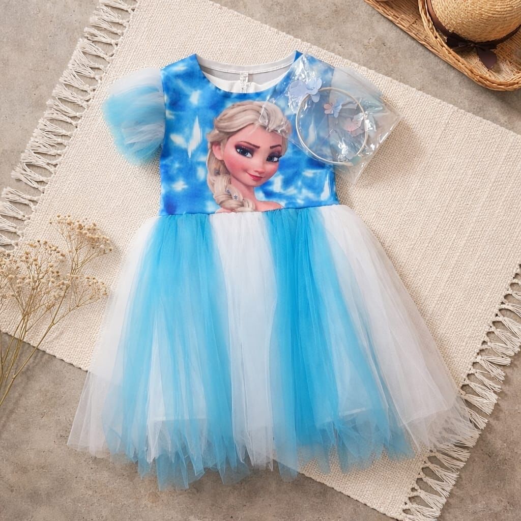 Elsa temalı bu özel kız çocuk elbise, masalsı ve göz alıcı tasarımıyla küçük prensesler için hazırlanmıştır. Üst kısmındaki Elsa baskısı canlı ve dikkat çekici bir görünüm sunarken, kabarık tül etek bölümü elbiseye hacimli ve zarif bir duruş kazandırır. Yumuşak iç astarı sayesinde konforlu bir kullanım sağlar ve çocukların rahat hareket etmesine olanak tanır. Kısa kollu ve hafif yapısı sayesinde özel günlerde, doğum günü organizasyonlarında ve etkinliklerde rahatlıkla tercih edilebilir. Ürünle birlikte uyumlu bir taç da gönderilmektedir. Şık, masalsı ve unutulmaz kombinler için ideal bir seçimdir.