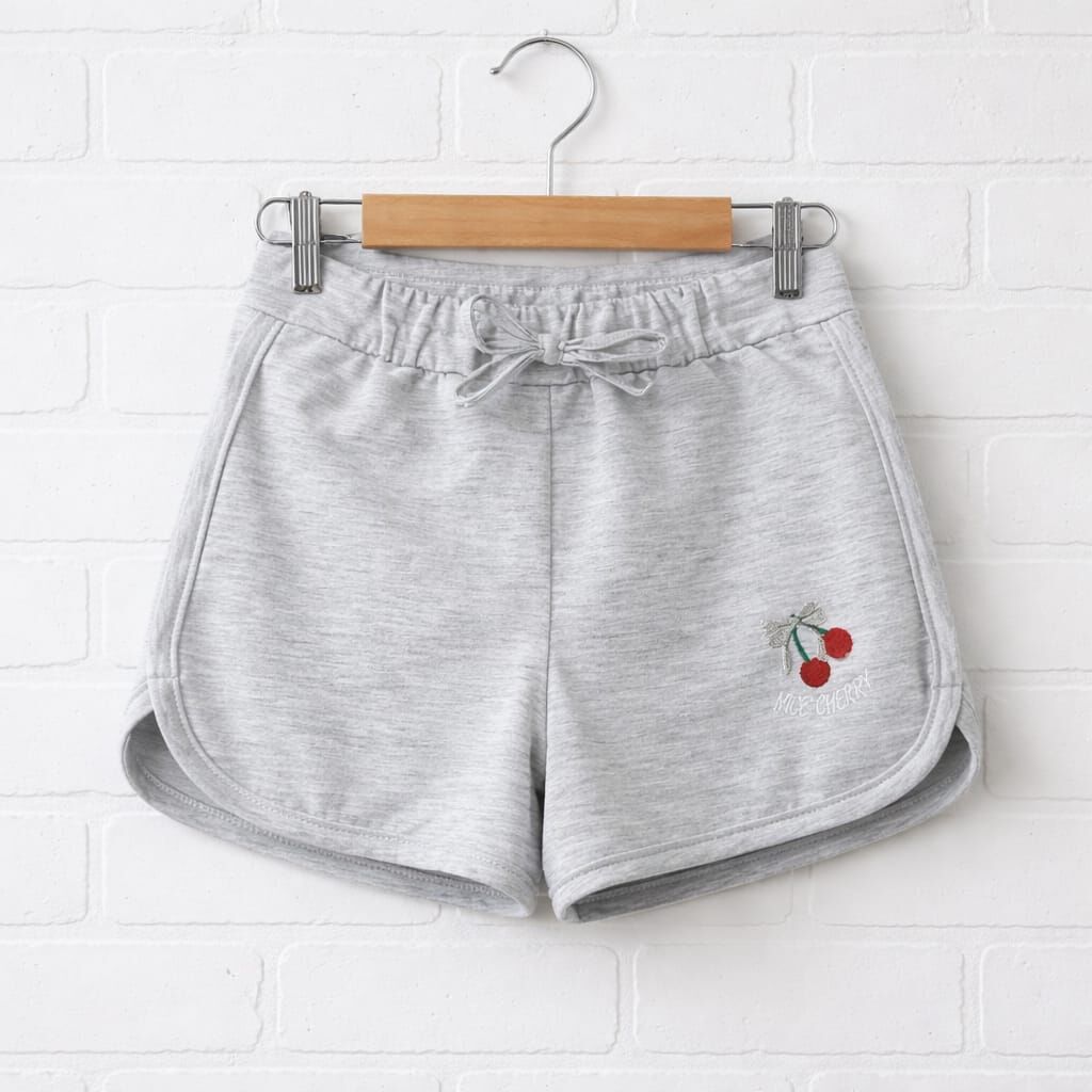 Kız Çocuk Gri Kiraz Nakışlı Spor Şort