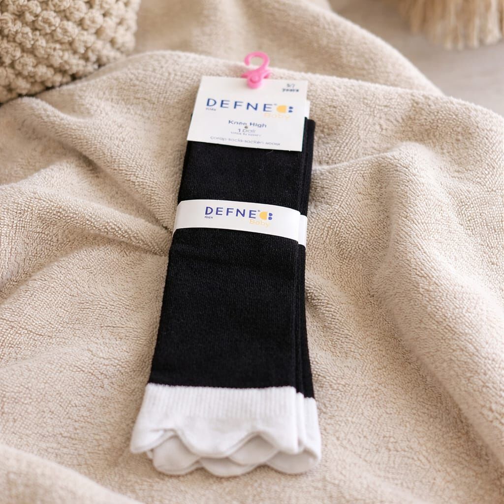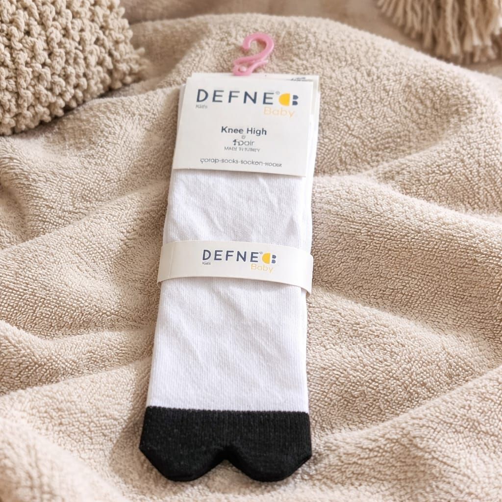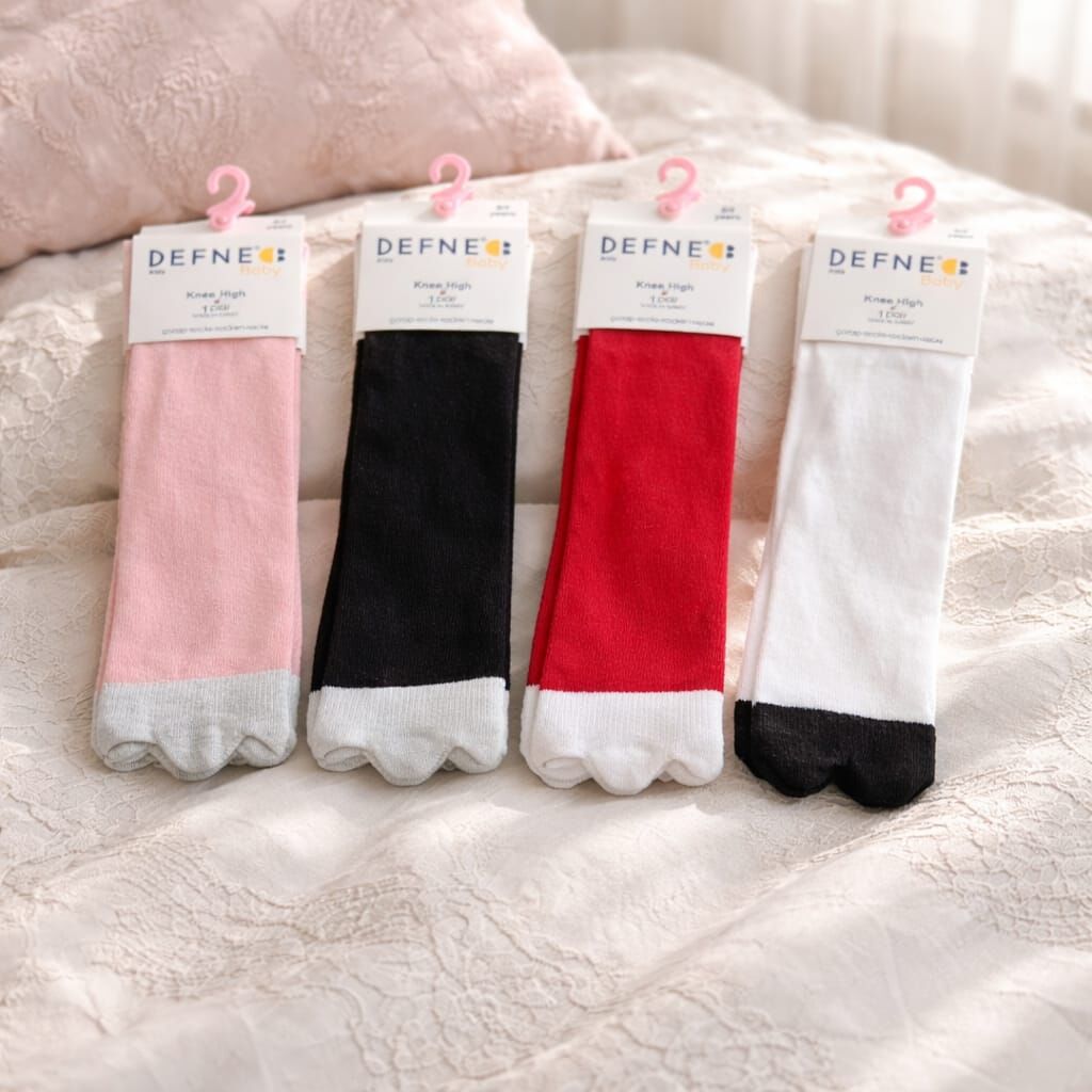 Modern ve sade tasarımıyla öne çıkan bu diz üstü çorap modeli; pembe-gri, siyah-beyaz, kırmızı-beyaz ve beyaz-siyah renk kombinasyonlarıyla sunulmaktadır. Ürün 1 çift (2 adet) olarak satılmaktadır.