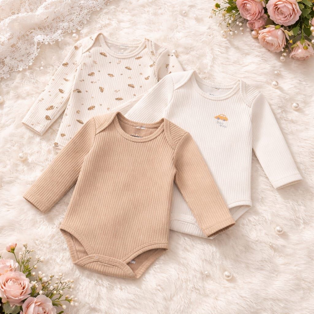 Doğal tonları ve zarif tasarımıyla öne çıkan bu 3’lü uzun kollu bebek body seti, günlük kullanım için ideal bir temel parçadır. Set; biri desenli, biri minimal baskılı ve biri düz olmak üzere üç farklı body’den oluşmaktadır.